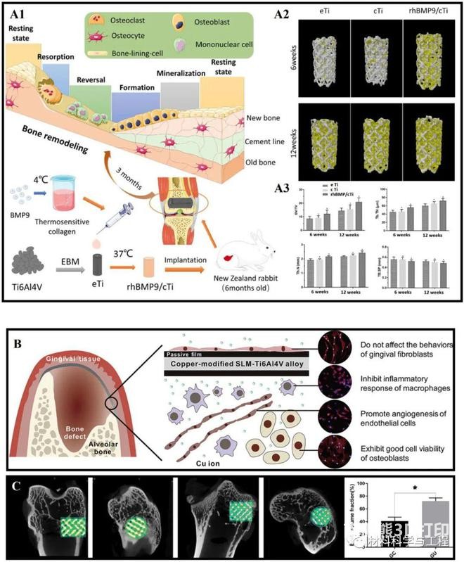 3D打印鈦基生物材料可根據(jù)個(gè)人的不同需求而定制,不僅可以制造復(fù)雜的結(jié)構(gòu),而且在成本、制造周期、個(gè)性化定制等方面具有無(wú)可比擬的優(yōu)勢(shì),可大力發(fā)展該技術(shù)在骨科、牙科和心血管等領(lǐng)域的應(yīng)用。然而,該技術(shù)仍然面臨著許多挑戰(zhàn),如如何平衡多孔骨質(zhì)生長(zhǎng)與力學(xué)性能之間的關(guān)系、增材制造技術(shù)的選擇以及參數(shù)優(yōu)化等。