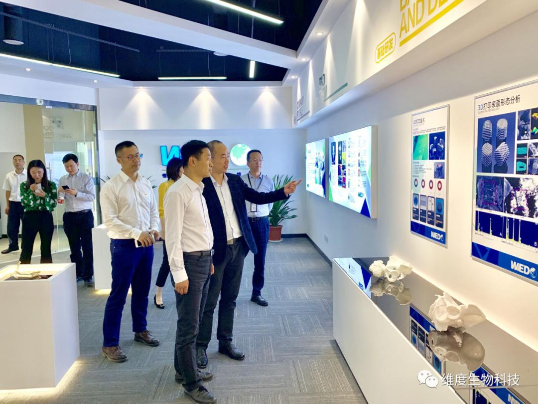 維度生物副總陳海浩和技術(shù)總監(jiān)伍蘇華向楊華副主任和其余調(diào)研領(lǐng)導(dǎo)介紹了維度生物發(fā)展現(xiàn)狀和技術(shù)優(yōu)勢(shì),在管委會(huì)領(lǐng)導(dǎo)的大力支持下,維度生物將致力于打造成為高端骨科創(chuàng)新醫(yī)療產(chǎn)品研發(fā)平臺(tái),力爭(zhēng)在未來(lái)幾年內(nèi)成為3D打印骨科醫(yī)療器械的龍頭企業(yè)。
