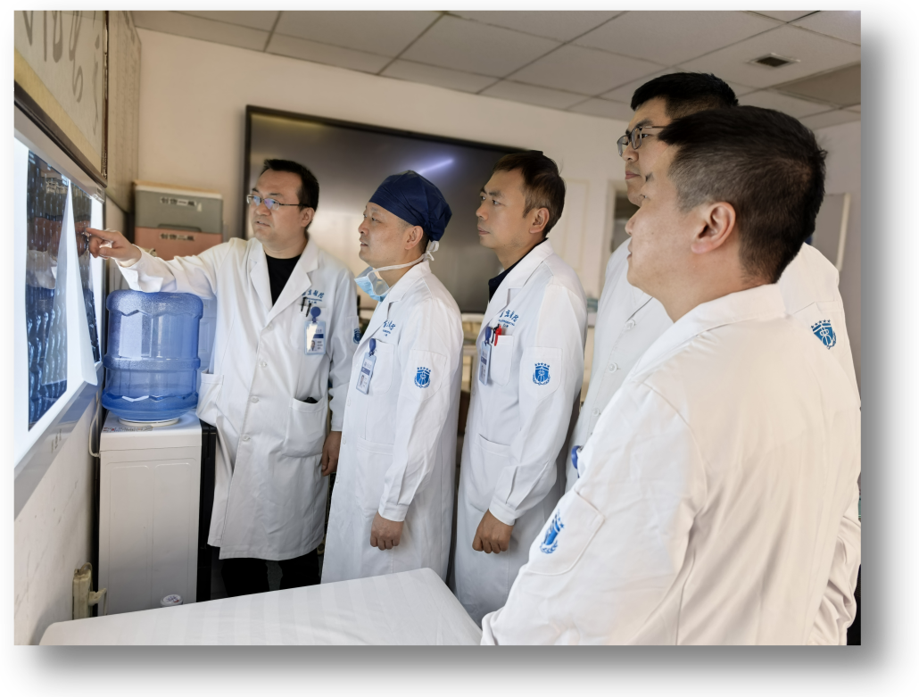 考慮到患者骨質(zhì)疏松狀況嚴(yán)重,骨折位置復(fù)位情況復(fù)雜,畢龍副教授、孟國林副教授迅速組織團(tuán)隊(duì)進(jìn)行會診討論,并聯(lián)系到解放軍總醫(yī)院唐佩福院士及陳華教授咨詢關(guān)于“解剖髓內(nèi)支撐重建系統(tǒng)”相關(guān)技術(shù)后,最終決定采用個(gè)性化內(nèi)植物定制與“解剖髓內(nèi)支撐重建系統(tǒng)”結(jié)合對患者進(jìn)行手術(shù)固定。